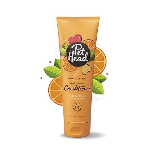 PET HEAD Dog Conditioner 250ml, Ditch the Dirt, Orange Scent, Best Dog Conditioner for Smelly Dogs, Deep Cleans Removes Odours, Deodorising, Vegan, Professional Grooming, Gentle Formula for Puppies