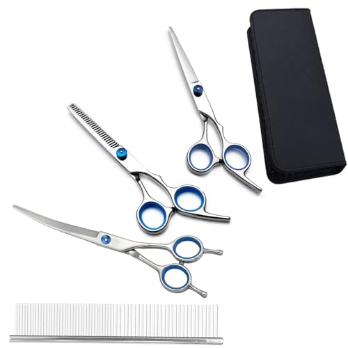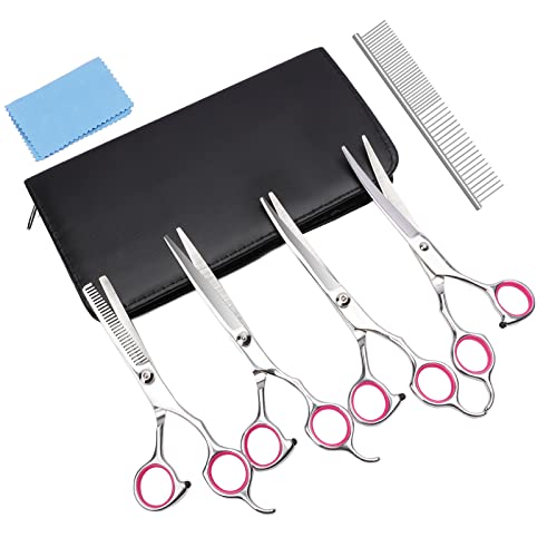 EVERESTA 7 Inch Dog Grooming Scissors Heavy Duty Titanium Pet Grooming Scissors Kit, Professional Thinning Shears, Straight Scissors with Comb for Dogs and Cats (Set of 4)
