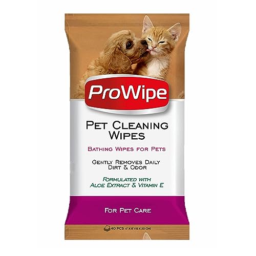 ProWipe Pet Wipes, Dog Wipes, Cat Wipes, Wipes for Pets with Aloe Extract & Vitamins, Perfect as Eye, Ear Wipes, for Bums, Suitable for Puppy, Kitten, Dogs and Cats, 1 Pack – 40 Count