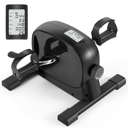 TABEKE Under Desk Bike Pedal Exerciser, Fully Assembled Mini Exercise Bike for Leg and Arm Workouts, Foldable Desk Bike Peddler Machine for Seniors with Clear LCD Display & Adjustable Resistance