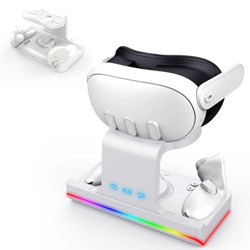 Generic VR Charging Dock Station Compatible with Quest 3 Controllers and Headset Charging Stand, Charging Storage Base with RGB Light Modes for Quest3 Accessories
