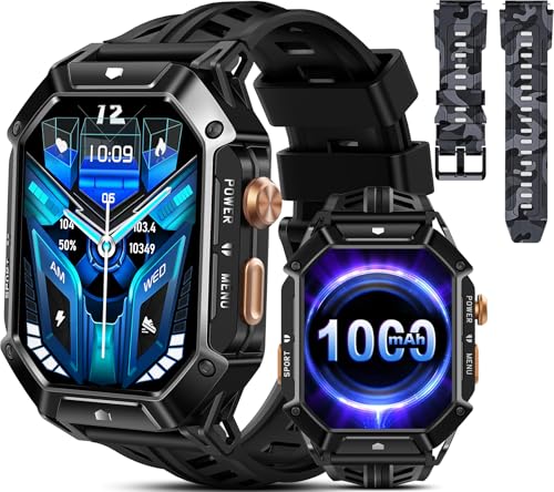 Bambooinn X1 Military Smart Watch for Men,100-Day Standby 50M Waterproof 2.13″ HD Fitness Watch,Sleep SpO2 Heart Rate Monitor Stress Test,103+Sports Modes Make/Receive Calls for iOS Android,Two Straps