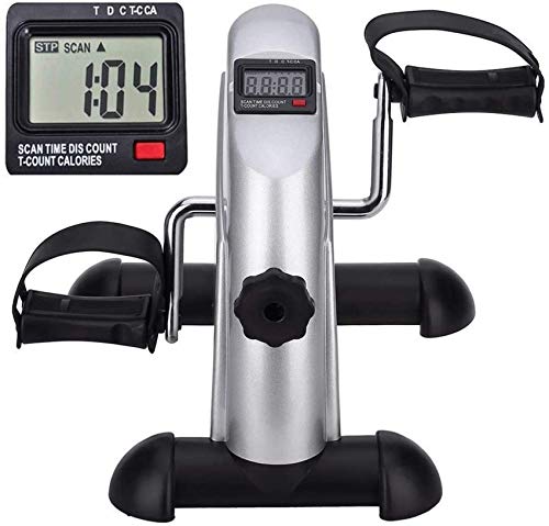 Mini Exercise Bike, Portable Home Pedal Exerciser Leg Arm Cardio Training Adjustable Resistance Knob with LCD Display (Silver)