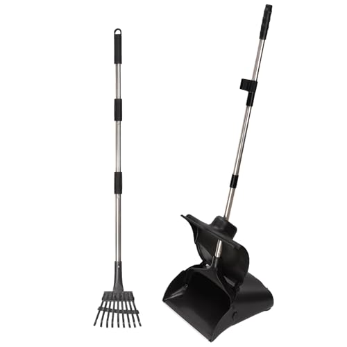 indiedouker Dog Pooper Scooper for Large Dogs – Large Capacity and 37″ Long Handle – Heavy-Duty Swivel Dustpan and Rake Set – Durable Poop Scooper for Dogs in The Yard