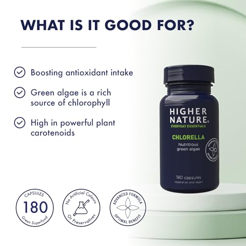 Higher Nature – Chlorella – Green Superfood – 250mg Chlorella – 180 Capsules