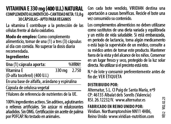 Viridian Natural Vitamin E 400IU. d-alpha tocopherol for best results – guaranteed Non-GMO