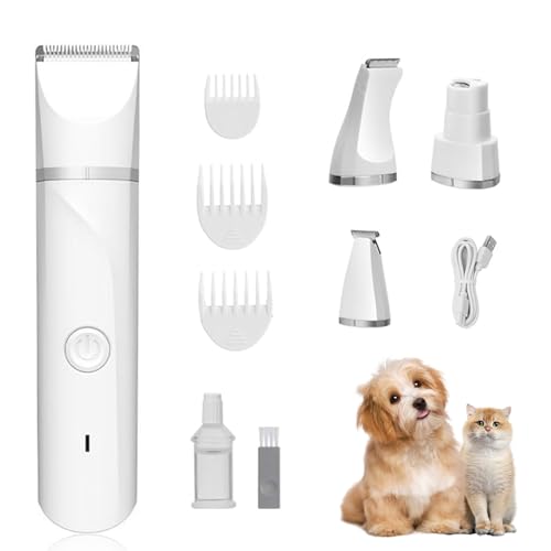Eptchn Dog Grooming Kit Hair Clipper, 4 in 1 Dog Nail Trimmers and Grinders, Quiet Cordless Electric Dog Paw Trimmer and Hair Clippers, Pet Grooming Supplies at Home