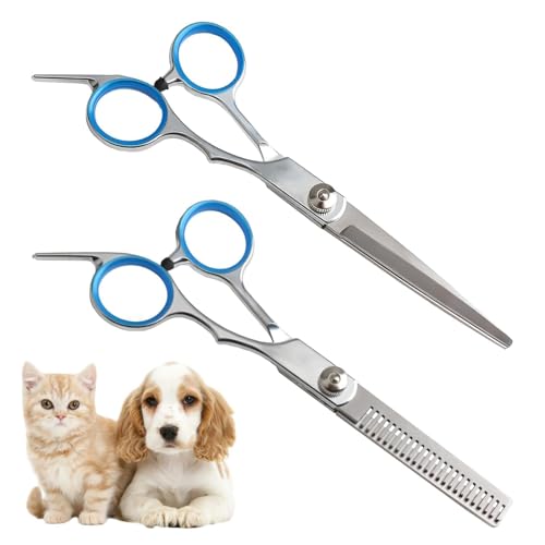 2 Pieces Dog Grooming Scissors, Cat Grooming Scissors, Stainless Steel, Pet Cat Hair Cutting Trimming Scissors 6.7 Inch, Professional Thinning Shears, Straight Scissors for Dogs and Cats