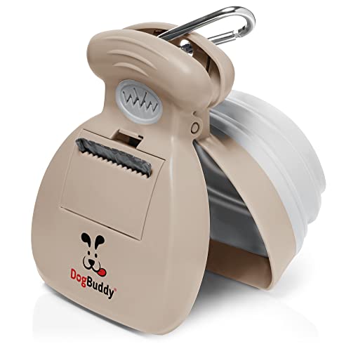 DogBuddy Pooper Scooper, Portable Dog Pooper Scooper, Poop Scoop for Small and Large Dogs, Pooper Scooper with Bag Attachment, Leash Clip and Dog Poop Bags Included (Medium, Taupe)