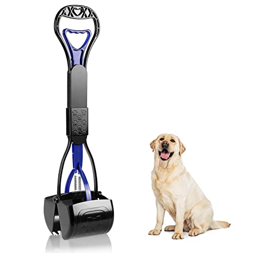 POMYDODU Pooper Scooper for Dogs, 24″ Long Handle Poop Scooper for One-Hand Opertating, Pet Pooper Scooper Foldable and Portable, Easy to Use on Grass, Dirt, Gravel – Blue