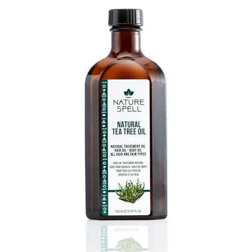 Nature Spell Tea Tree Oil for Hair & Skin 150ml – Hair Oil for Itchy Scalp, Deeply Nourishing – Skincare Oil to Reduce Skin Irritation, Redness, and Inflamed Skin – Made in the UK
