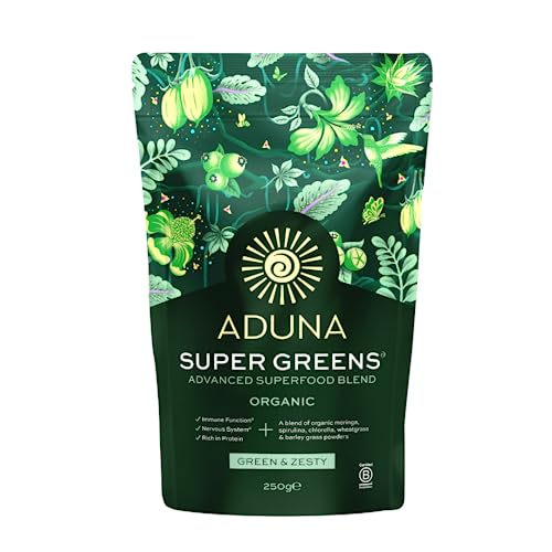 Aduna Advanced Superfood Super Greens Blend | 100% Organic Powder for Smoothies/Juices & Yoghurt | 250g Resealable and Recyclable Pack