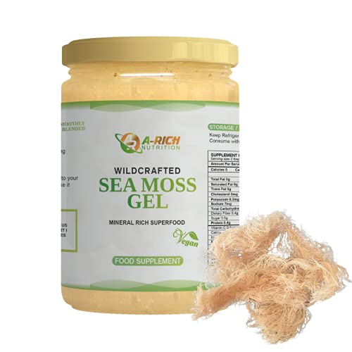 A-RICH NUTRITION Sea Moss Gel Wildcrafted Chondrus crispus Organic Irish Moss Vitamins Minerals Superfood 300g